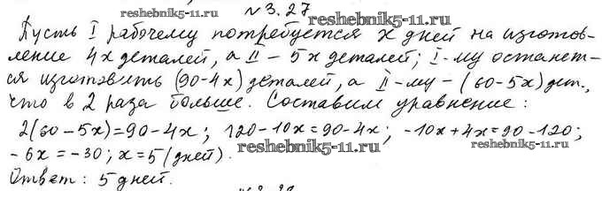 Готовая домашняя работа с ответами по Алгебре за 7 класс Мерзляк, Поляков Учебник Алгоритм успеха Углубленный уровень Вентана-граф 2019 ФГОС - §3. Решение задач с помощью уравнений 3.27