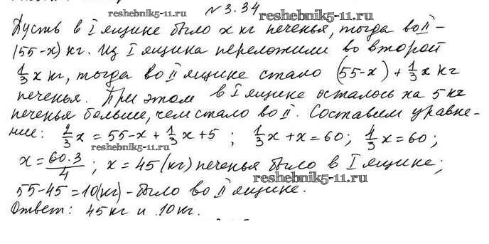 Готовая домашняя работа с ответами по Алгебре за 7 класс Мерзляк, Поляков Учебник Алгоритм успеха Углубленный уровень Вентана-граф 2019 ФГОС - §3. Решение задач с помощью уравнений 3.34