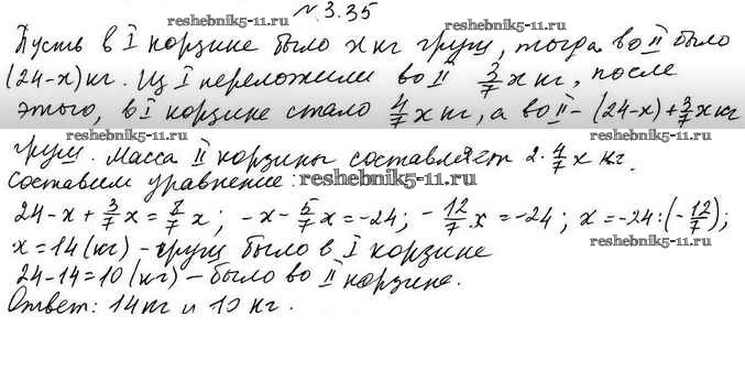 Готовая домашняя работа с ответами по Алгебре за 7 класс Мерзляк, Поляков Учебник Алгоритм успеха Углубленный уровень Вентана-граф 2019 ФГОС - §3. Решение задач с помощью уравнений 3.35