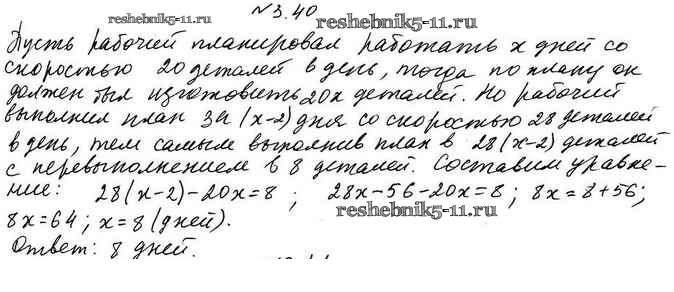 Готовая домашняя работа с ответами по Алгебре за 7 класс Мерзляк, Поляков Учебник Алгоритм успеха Углубленный уровень Вентана-граф 2019 ФГОС - §3. Решение задач с помощью уравнений 3.40