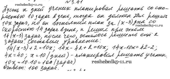 Готовая домашняя работа с ответами по Алгебре за 7 класс Мерзляк, Поляков Учебник Алгоритм успеха Углубленный уровень Вентана-граф 2019 ФГОС - §3. Решение задач с помощью уравнений 3.41