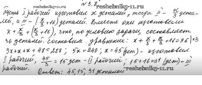 Готовая домашняя работа с ответами по Алгебре за 7 класс Мерзляк, Поляков Учебник Алгоритм успеха Углубленный уровень Вентана-граф 2019 ФГОС - §3. Решение задач с помощью уравнений 3.8