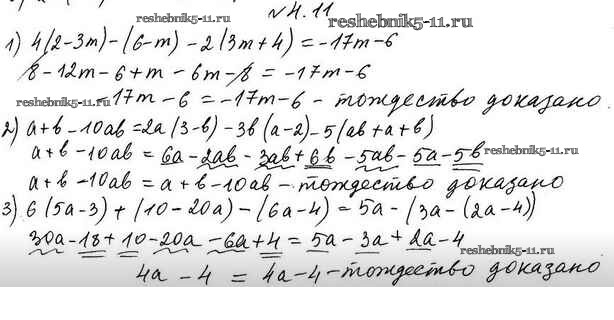 Готовая домашняя работа с ответами по Алгебре за 7 класс Мерзляк, Поляков Учебник Алгоритм успеха Углубленный уровень Вентана-граф 2019 ФГОС - §4. Тождественно равные выражения. Тождества 4.11