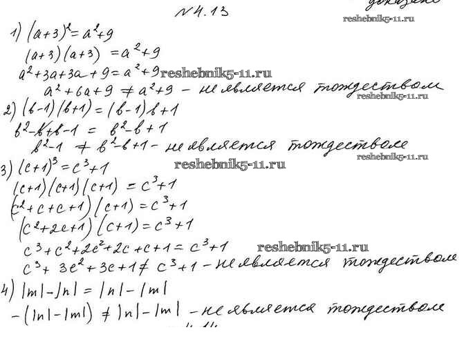 Готовая домашняя работа с ответами по Алгебре за 7 класс Мерзляк, Поляков Учебник Алгоритм успеха Углубленный уровень Вентана-граф 2019 ФГОС - §4. Тождественно равные выражения. Тождества 4.13