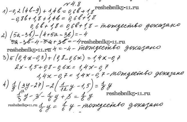 Готовая домашняя работа с ответами по Алгебре за 7 класс Мерзляк, Поляков Учебник Алгоритм успеха Углубленный уровень Вентана-граф 2019 ФГОС - §4. Тождественно равные выражения. Тождества 4.8