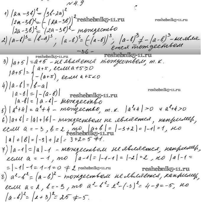Готовая домашняя работа с ответами по Алгебре за 7 класс Мерзляк, Поляков Учебник Алгоритм успеха Углубленный уровень Вентана-граф 2019 ФГОС - §4. Тождественно равные выражения. Тождества 4.9