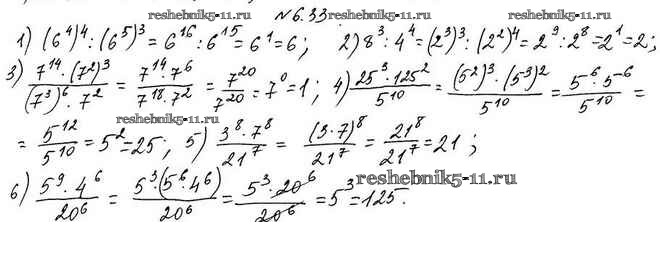 Готовая домашняя работа с ответами по Алгебре за 7 класс Мерзляк, Поляков Учебник Алгоритм успеха Углубленный уровень Вентана-граф 2019 ФГОС - §6. Свойства степени с натуральным показателем 6.33