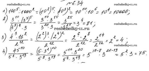 Готовая домашняя работа с ответами по Алгебре за 7 класс Мерзляк, Поляков Учебник Алгоритм успеха Углубленный уровень Вентана-граф 2019 ФГОС - §6. Свойства степени с натуральным показателем 6.34