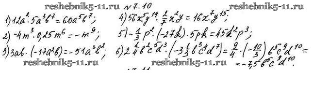 Готовая домашняя работа с ответами по Алгебре за 7 класс Мерзляк, Поляков Учебник Алгоритм успеха Углубленный уровень Вентана-граф 2019 ФГОС - §7. Одночлены 7.10