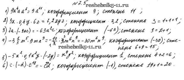 Готовая домашняя работа с ответами по Алгебре за 7 класс Мерзляк, Поляков Учебник Алгоритм успеха Углубленный уровень Вентана-граф 2019 ФГОС - §7. Одночлены 7.5