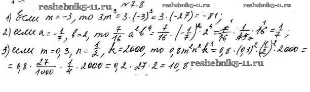 Готовая домашняя работа с ответами по Алгебре за 7 класс Мерзляк, Поляков Учебник Алгоритм успеха Углубленный уровень Вентана-граф 2019 ФГОС - §7. Одночлены 7.8