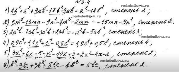 Готовая домашняя работа с ответами по Алгебре за 7 класс Мерзляк, Поляков Учебник Алгоритм успеха Углубленный уровень Вентана-граф 2019 ФГОС - §8. Многочлены 8.4