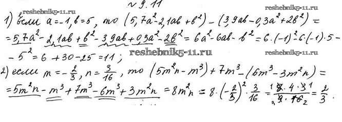 Готовая домашняя работа с ответами по Алгебре за 7 класс Мерзляк, Поляков Учебник Алгоритм успеха Углубленный уровень Вентана-граф 2019 ФГОС - §9. Сложение и вычитание многочленов 9.11