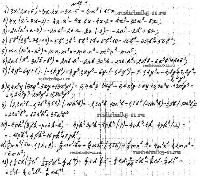 Готовая домашняя работа с ответами по Алгебре за 7 класс Мерзляк, Поляков Учебник Алгоритм успеха Углубленный уровень Вентана-граф 2019 ФГОС - §10. Умножение одночлена на многочлен 10.1