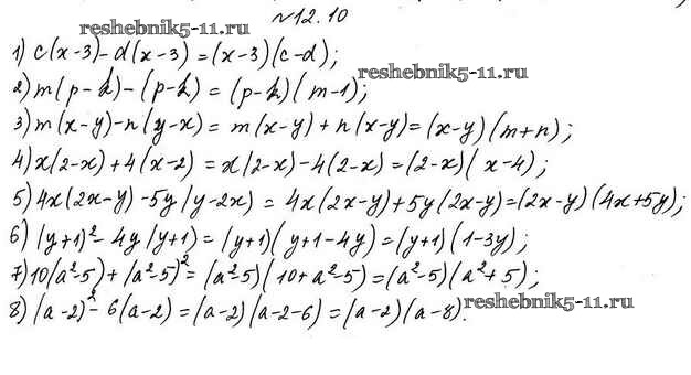 Готовая домашняя работа с ответами по Алгебре за 7 класс Мерзляк, Поляков Учебник Алгоритм успеха Углубленный уровень Вентана-граф 2019 ФГОС - §12. Разложение многочленов на множители. Вынесение общего множителя за скобки 12.10