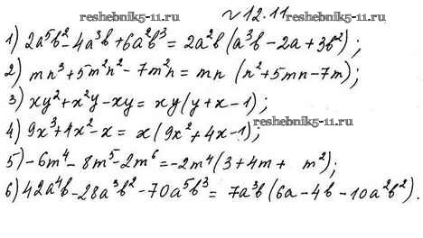 Готовая домашняя работа с ответами по Алгебре за 7 класс Мерзляк, Поляков Учебник Алгоритм успеха Углубленный уровень Вентана-граф 2019 ФГОС - §12. Разложение многочленов на множители. Вынесение общего множителя за скобки 12.11