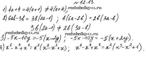 Готовая домашняя работа с ответами по Алгебре за 7 класс Мерзляк, Поляков Учебник Алгоритм успеха Углубленный уровень Вентана-граф 2019 ФГОС - §12. Разложение многочленов на множители. Вынесение общего множителя за скобки 12.13
