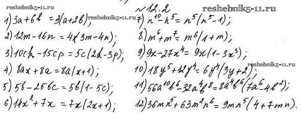 Готовая домашняя работа с ответами по Алгебре за 7 класс Мерзляк, Поляков Учебник Алгоритм успеха Углубленный уровень Вентана-граф 2019 ФГОС - §12. Разложение многочленов на множители. Вынесение общего множителя за скобки 12.2