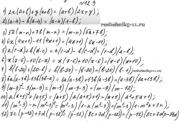 Готовая домашняя работа с ответами по Алгебре за 7 класс Мерзляк, Поляков Учебник Алгоритм успеха Углубленный уровень Вентана-граф 2019 ФГОС - §12. Разложение многочленов на множители. Вынесение общего множителя за скобки 12.9