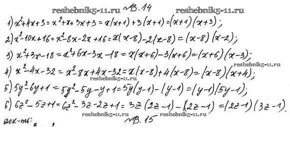 Готовая домашняя работа с ответами по Алгебре за 7 класс Мерзляк, Поляков Учебник Алгоритм успеха Углубленный уровень Вентана-граф 2019 ФГОС - §13. Разложение многочленов на множители. Метод группировки 13.14