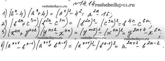 Готовая домашняя работа с ответами по Алгебре за 7 класс Мерзляк, Поляков Учебник Алгоритм успеха Углубленный уровень Вентана-граф 2019 ФГОС - §14. Произведение разности и суммы двух выражений 14.14