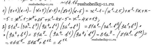 Готовая домашняя работа с ответами по Алгебре за 7 класс Мерзляк, Поляков Учебник Алгоритм успеха Углубленный уровень Вентана-граф 2019 ФГОС - §14. Произведение разности и суммы двух выражений 14.16