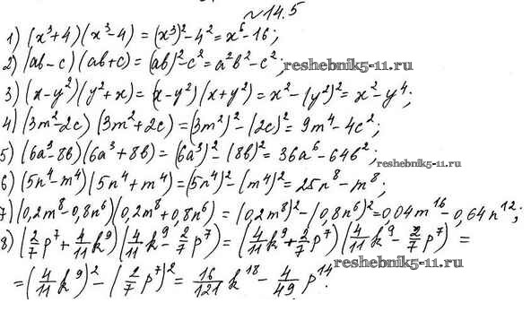 Готовая домашняя работа с ответами по Алгебре за 7 класс Мерзляк, Поляков Учебник Алгоритм успеха Углубленный уровень Вентана-граф 2019 ФГОС - §14. Произведение разности и суммы двух выражений 14.5