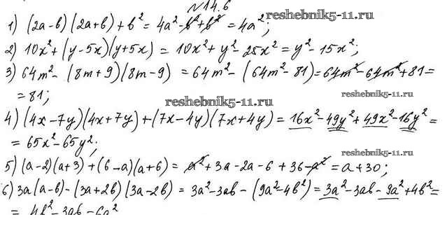 Готовая домашняя работа с ответами по Алгебре за 7 класс Мерзляк, Поляков Учебник Алгоритм успеха Углубленный уровень Вентана-граф 2019 ФГОС - §14. Произведение разности и суммы двух выражений 14.6
