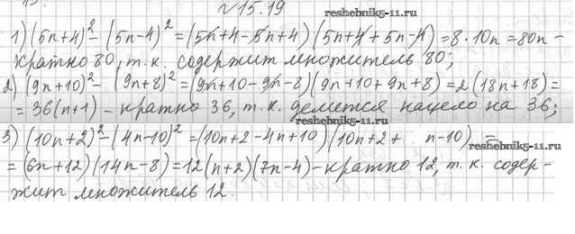 Готовая домашняя работа с ответами по Алгебре за 7 класс Мерзляк, Поляков Учебник Алгоритм успеха Углубленный уровень Вентана-граф 2019 ФГОС - §15. Разность квадратов двух выражений 15.19