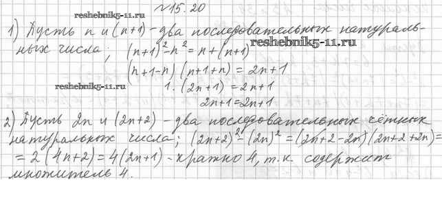 Готовая домашняя работа с ответами по Алгебре за 7 класс Мерзляк, Поляков Учебник Алгоритм успеха Углубленный уровень Вентана-граф 2019 ФГОС - §15. Разность квадратов двух выражений 15.20