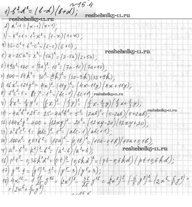 Готовая домашняя работа с ответами по Алгебре за 7 класс Мерзляк, Поляков Учебник Алгоритм успеха Углубленный уровень Вентана-граф 2019 ФГОС - §15. Разность квадратов двух выражений 15.4