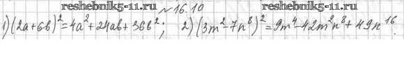Готовая домашняя работа с ответами по Алгебре за 7 класс Мерзляк, Поляков Учебник Алгоритм успеха Углубленный уровень Вентана-граф 2019 ФГОС - §16. Квадрат суммы и квадрат разности двух выражений. Квадрат суммы нескольких выражений 16.10