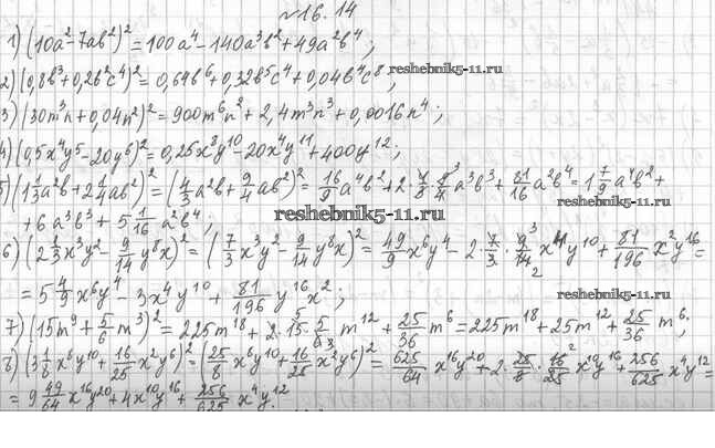 Готовая домашняя работа с ответами по Алгебре за 7 класс Мерзляк, Поляков Учебник Алгоритм успеха Углубленный уровень Вентана-граф 2019 ФГОС - §16. Квадрат суммы и квадрат разности двух выражений. Квадрат суммы нескольких выражений 16.14