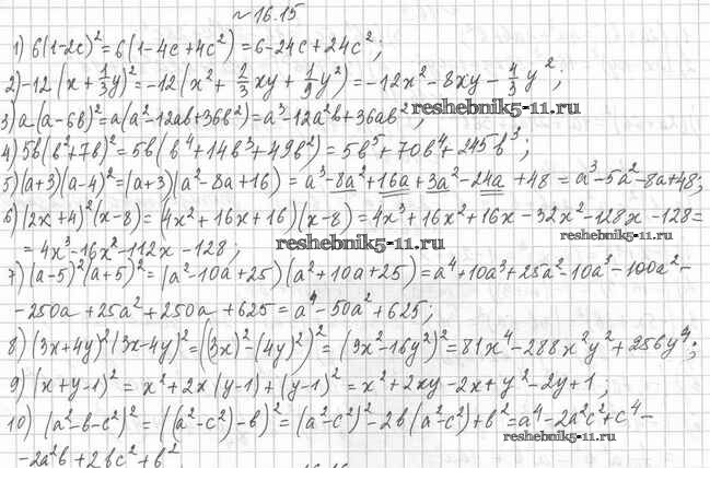 Готовая домашняя работа с ответами по Алгебре за 7 класс Мерзляк, Поляков Учебник Алгоритм успеха Углубленный уровень Вентана-граф 2019 ФГОС - §16. Квадрат суммы и квадрат разности двух выражений. Квадрат суммы нескольких выражений 16.15