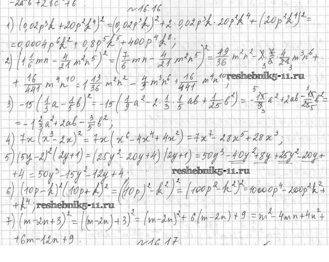 Готовая домашняя работа с ответами по Алгебре за 7 класс Мерзляк, Поляков Учебник Алгоритм успеха Углубленный уровень Вентана-граф 2019 ФГОС - §16. Квадрат суммы и квадрат разности двух выражений. Квадрат суммы нескольких выражений 16.16