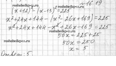 Готовая домашняя работа с ответами по Алгебре за 7 класс Мерзляк, Поляков Учебник Алгоритм успеха Углубленный уровень Вентана-граф 2019 ФГОС - §16. Квадрат суммы и квадрат разности двух выражений. Квадрат суммы нескольких выражений 16.19