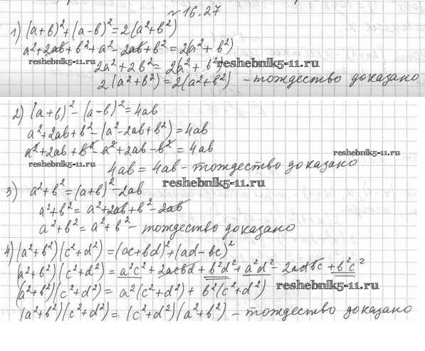 Готовая домашняя работа с ответами по Алгебре за 7 класс Мерзляк, Поляков Учебник Алгоритм успеха Углубленный уровень Вентана-граф 2019 ФГОС - §16. Квадрат суммы и квадрат разности двух выражений. Квадрат суммы нескольких выражений 16.27