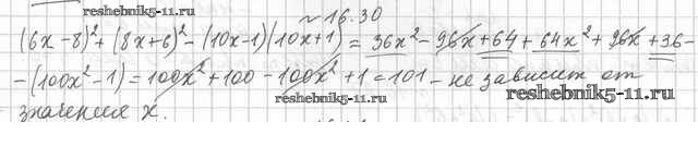 Готовая домашняя работа с ответами по Алгебре за 7 класс Мерзляк, Поляков Учебник Алгоритм успеха Углубленный уровень Вентана-граф 2019 ФГОС - §16. Квадрат суммы и квадрат разности двух выражений. Квадрат суммы нескольких выражений 16.30