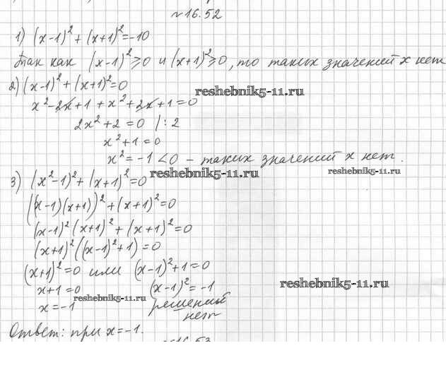 Готовая домашняя работа с ответами по Алгебре за 7 класс Мерзляк, Поляков Учебник Алгоритм успеха Углубленный уровень Вентана-граф 2019 ФГОС - §16. Квадрат суммы и квадрат разности двух выражений. Квадрат суммы нескольких выражений 16.52