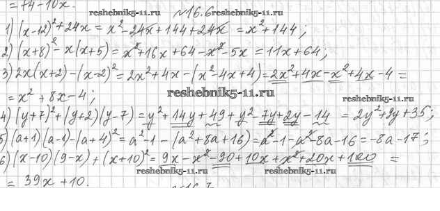 Готовая домашняя работа с ответами по Алгебре за 7 класс Мерзляк, Поляков Учебник Алгоритм успеха Углубленный уровень Вентана-граф 2019 ФГОС - §16. Квадрат суммы и квадрат разности двух выражений. Квадрат суммы нескольких выражений 16.6