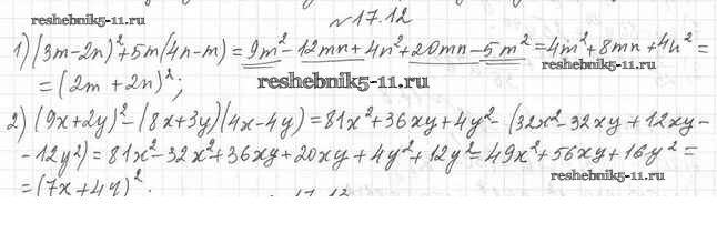 Готовая домашняя работа с ответами по Алгебре за 7 класс Мерзляк, Поляков Учебник Алгоритм успеха Углубленный уровень Вентана-граф 2019 ФГОС - §17. Преобразование многочлена в квадрат суммы или разности двух выражений либо в квадрат суммы нескольких выражений 17.12