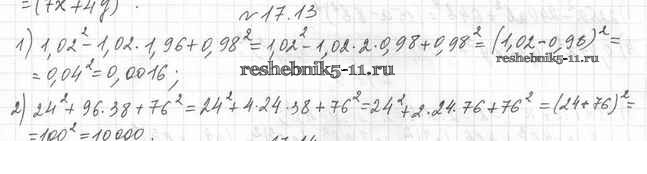 Готовая домашняя работа с ответами по Алгебре за 7 класс Мерзляк, Поляков Учебник Алгоритм успеха Углубленный уровень Вентана-граф 2019 ФГОС - §17. Преобразование многочлена в квадрат суммы или разности двух выражений либо в квадрат суммы нескольких выражений 17.13