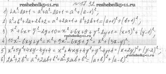 Готовая домашняя работа с ответами по Алгебре за 7 класс Мерзляк, Поляков Учебник Алгоритм успеха Углубленный уровень Вентана-граф 2019 ФГОС - §17. Преобразование многочлена в квадрат суммы или разности двух выражений либо в квадрат суммы нескольких выражений 17.32