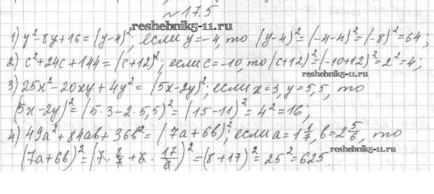 Готовая домашняя работа с ответами по Алгебре за 7 класс Мерзляк, Поляков Учебник Алгоритм успеха Углубленный уровень Вентана-граф 2019 ФГОС - §17. Преобразование многочлена в квадрат суммы или разности двух выражений либо в квадрат суммы нескольких выражений 17.5