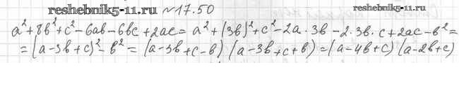 Готовая домашняя работа с ответами по Алгебре за 7 класс Мерзляк, Поляков Учебник Алгоритм успеха Углубленный уровень Вентана-граф 2019 ФГОС - §17. Преобразование многочлена в квадрат суммы или разности двух выражений либо в квадрат суммы нескольких выражений 17.50