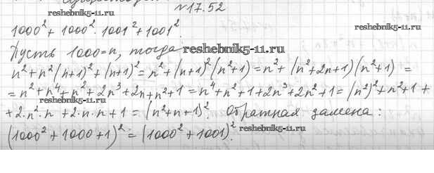 Готовая домашняя работа с ответами по Алгебре за 7 класс Мерзляк, Поляков Учебник Алгоритм успеха Углубленный уровень Вентана-граф 2019 ФГОС - §17. Преобразование многочлена в квадрат суммы или разности двух выражений либо в квадрат суммы нескольких выражений 17.52