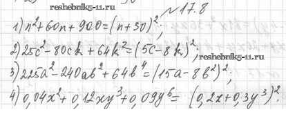 Готовая домашняя работа с ответами по Алгебре за 7 класс Мерзляк, Поляков Учебник Алгоритм успеха Углубленный уровень Вентана-граф 2019 ФГОС - §17. Преобразование многочлена в квадрат суммы или разности двух выражений либо в квадрат суммы нескольких выражений 17.8