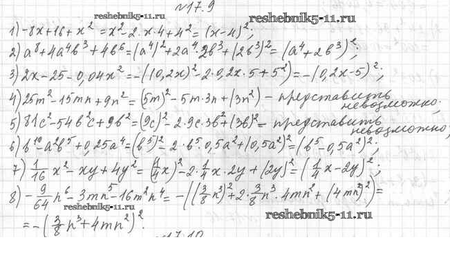 Готовая домашняя работа с ответами по Алгебре за 7 класс Мерзляк, Поляков Учебник Алгоритм успеха Углубленный уровень Вентана-граф 2019 ФГОС - §17. Преобразование многочлена в квадрат суммы или разности двух выражений либо в квадрат суммы нескольких выражений 17.9