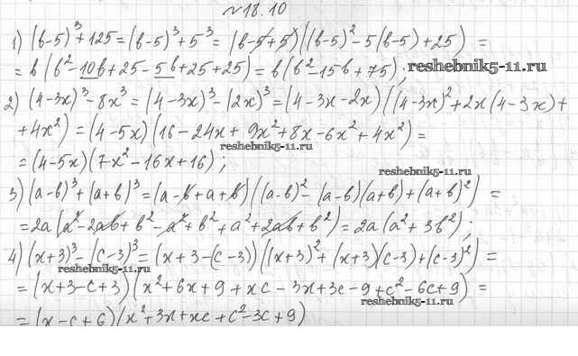 Готовая домашняя работа с ответами по Алгебре за 7 класс Мерзляк, Поляков Учебник Алгоритм успеха Углубленный уровень Вентана-граф 2019 ФГОС - §18. Сумма и разность кубов двух выражений 18.10