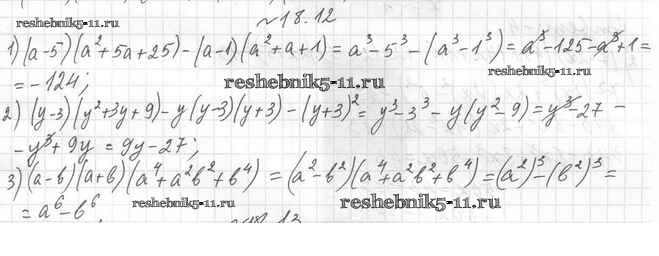 Готовая домашняя работа с ответами по Алгебре за 7 класс Мерзляк, Поляков Учебник Алгоритм успеха Углубленный уровень Вентана-граф 2019 ФГОС - §18. Сумма и разность кубов двух выражений 18.12
